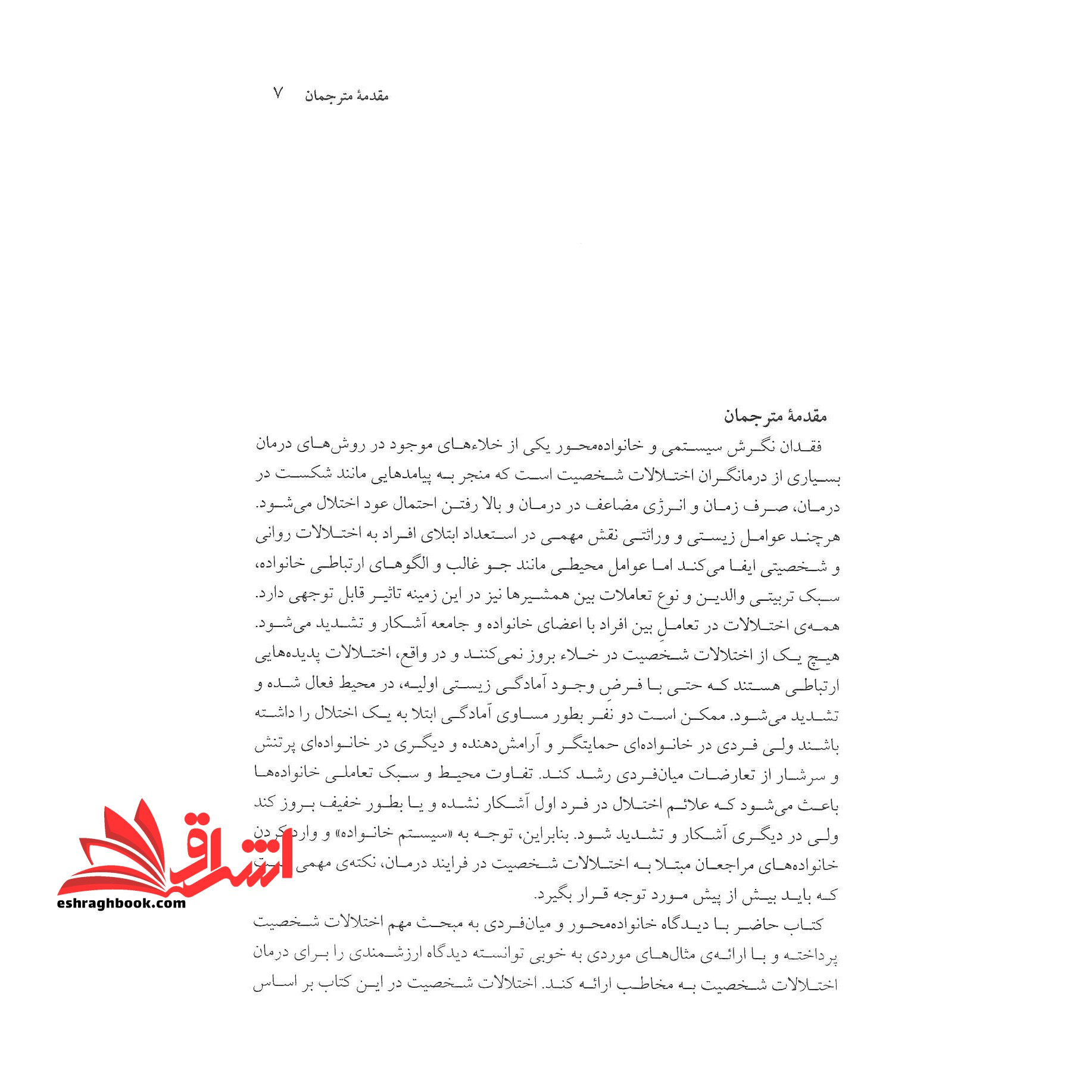 درباره کتاب خانواده درمانی اختلالات شخصیت اثر ملکالم مک فارلن با ترجمه ی سمانه نجارپوریان و فاطمه بای و مریم فاتحی زاده و سمیه شاهمرادی :